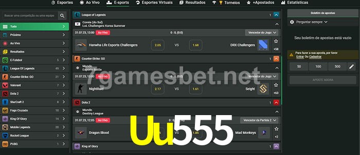 O Uu555 oferece uma grande seleção de opções de apostas em e-sports com probabilidades competitivas